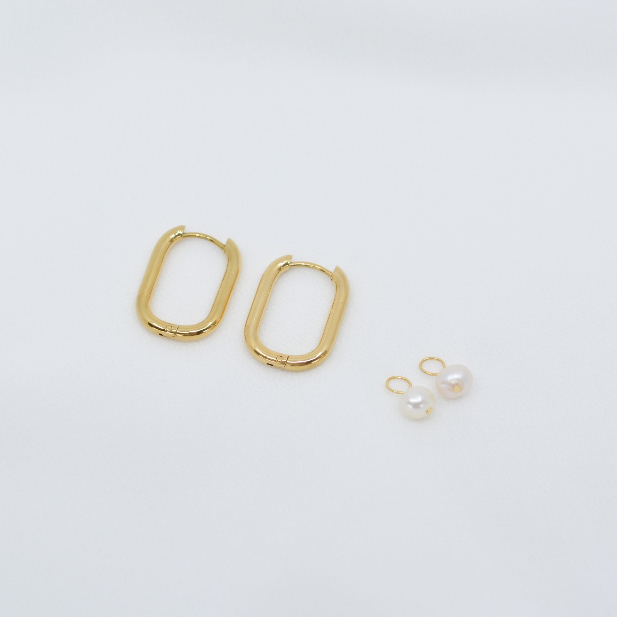 Ročno izdelani uhani s snemljivimi obeski pravih sladkovodnih biserov, so popoln kos, ki združuje nežnost, minimalizem in brezčasno eleganco. Uhani so izdelani iz nerjavečega jekla in pozlačeni z 18k zlatom. Lahko jih nosite z obeskom bisera, ali pa bisere snamete in rinke nosite samostojno.