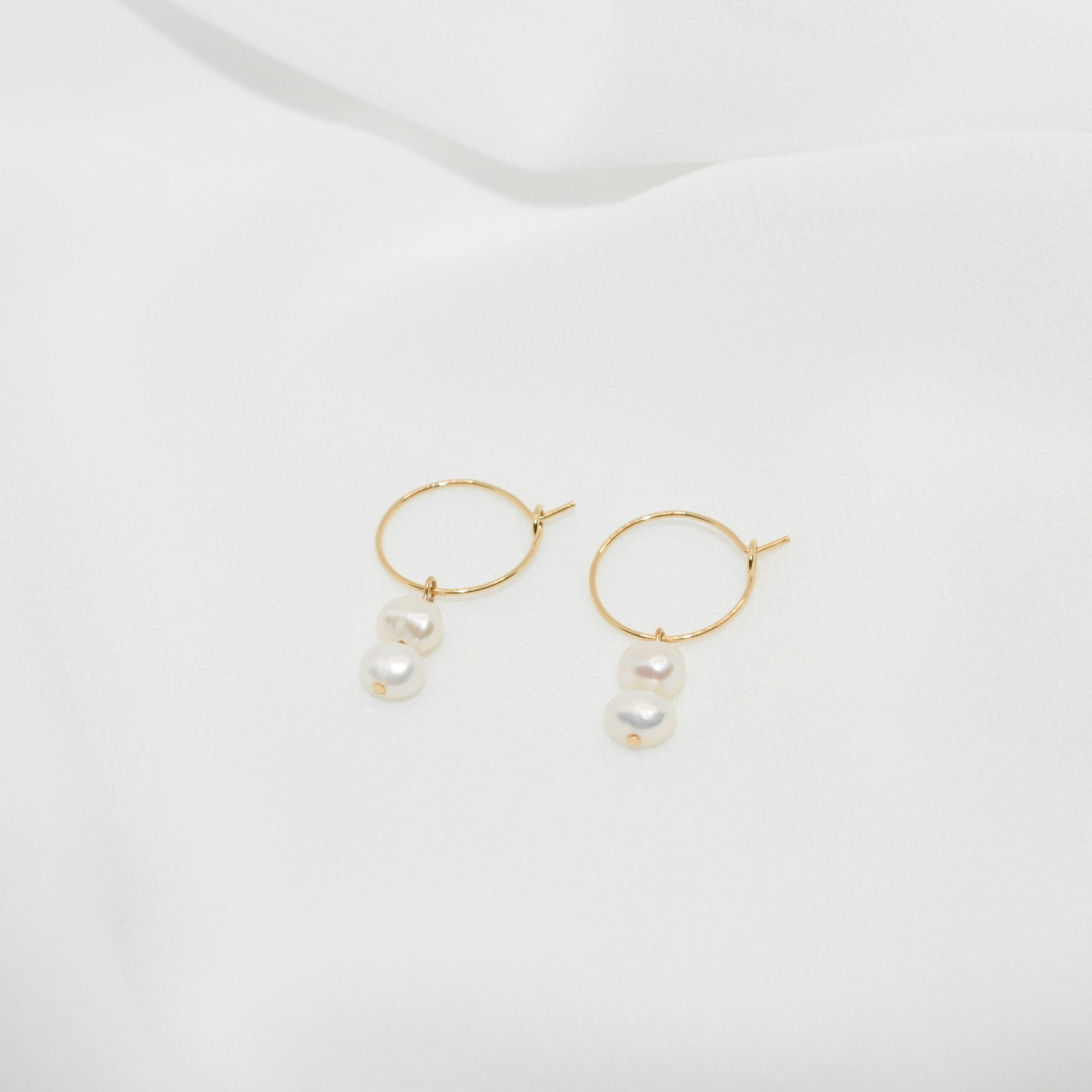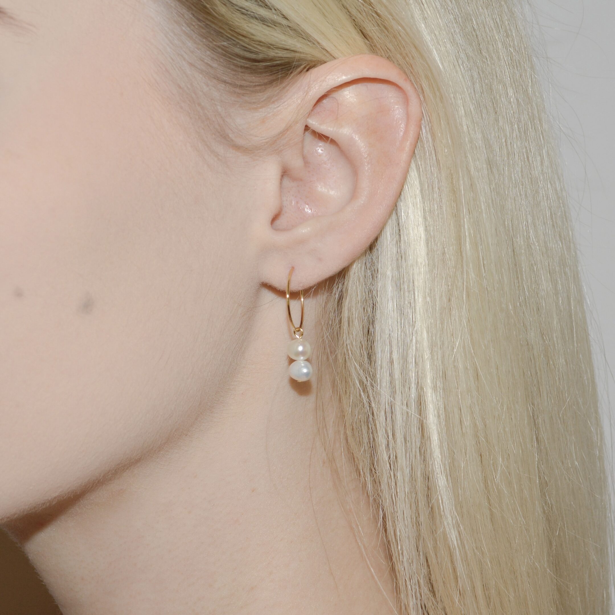 Ročno izdelani uhani z obeski pravih sladkovodnih biserov, so popoln kos, ki združuje nežnost, minimalizem in brezčasno eleganco. Uhani so izdelani iz nerjavečega jekla in pozlačeni z 18k zlatom.