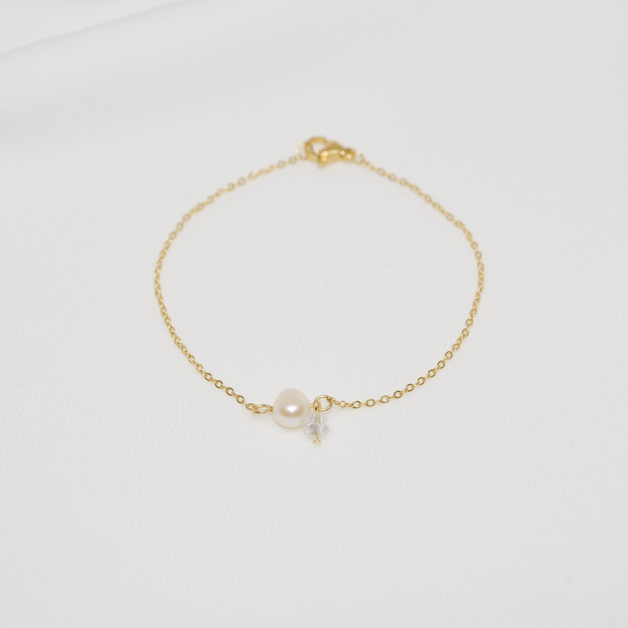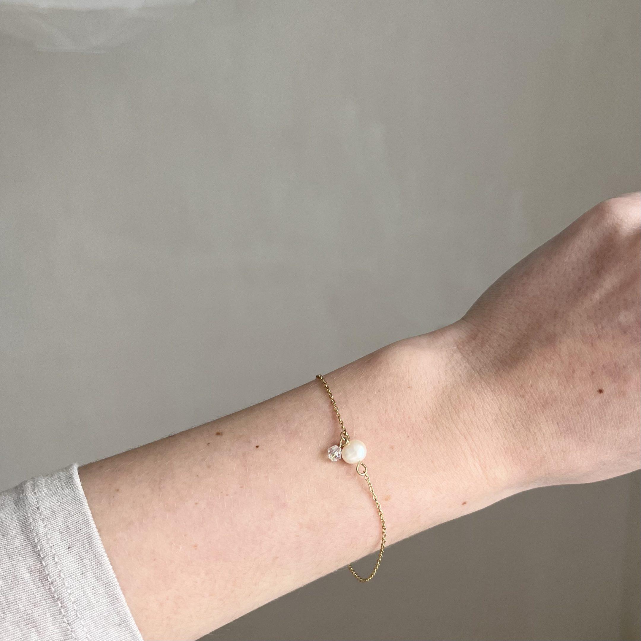 Je idealen dodatek za tiste, ki želijo izraziti svojo edinstvenost, ustvarjalnost in stil na subtilen način. Izdelana je z ljubeznijo in skrbnostjo do vsake podrobnosti, kar ji daje poseben čar in edinstvenost. Sladkovodni biser je skrbno izbran, da odraža svojo edinstvenost, naravno lepoto in poseben sijaj. Minimalističen dizajn omogoča, da biser zasije kot osrednji element zapestnice, kar jo naredi idealno za vsakodnevno nošenje ali posebne priložnosti.