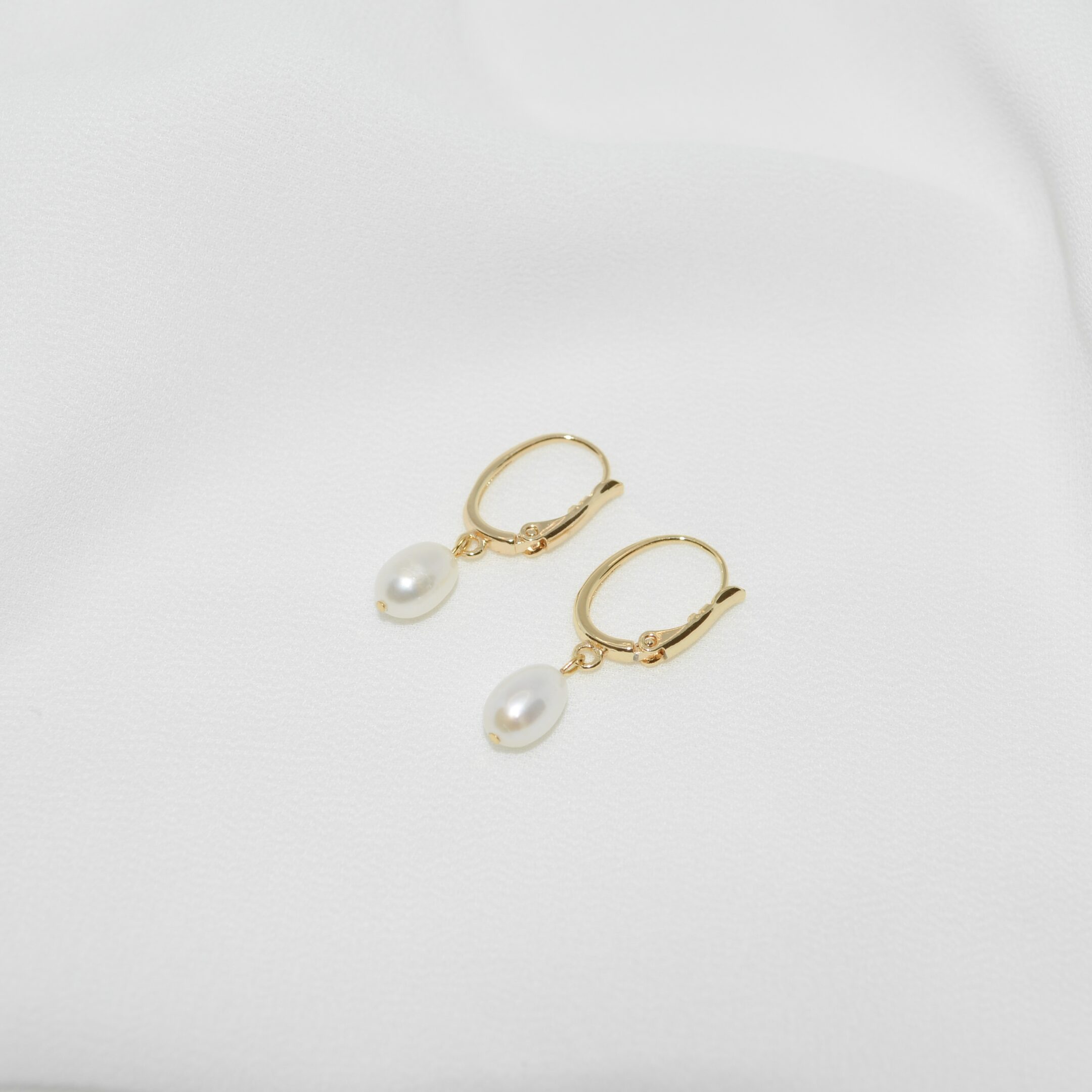 Ročno izdelani uhani z obeski pravih sladkovodnih biserov v pravilni obliki riževega zrna, so popoln kos, ki združuje nežnost, minimalizem in brezčasno eleganco. Uhani so izdelani iz nerjavečega jekla in pozlačeni z 18k zlatom.