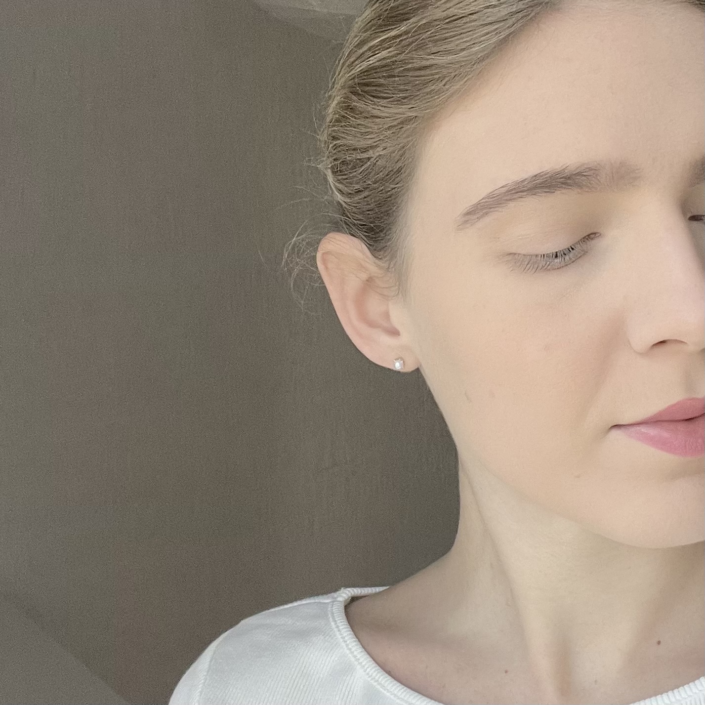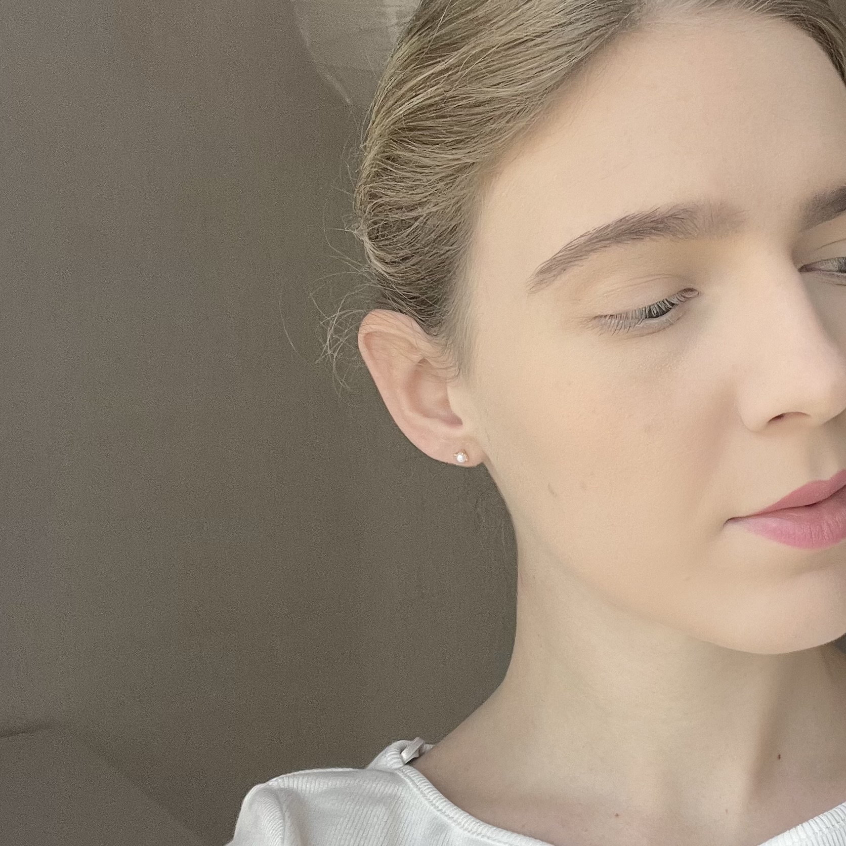 Minimalistični uhani z majhno perlico, izdelani iz Srebra 925 oz. Sterling silver 925. Uhani so hipoalergeni, zato so primerni tudi za občutljivo kožo.