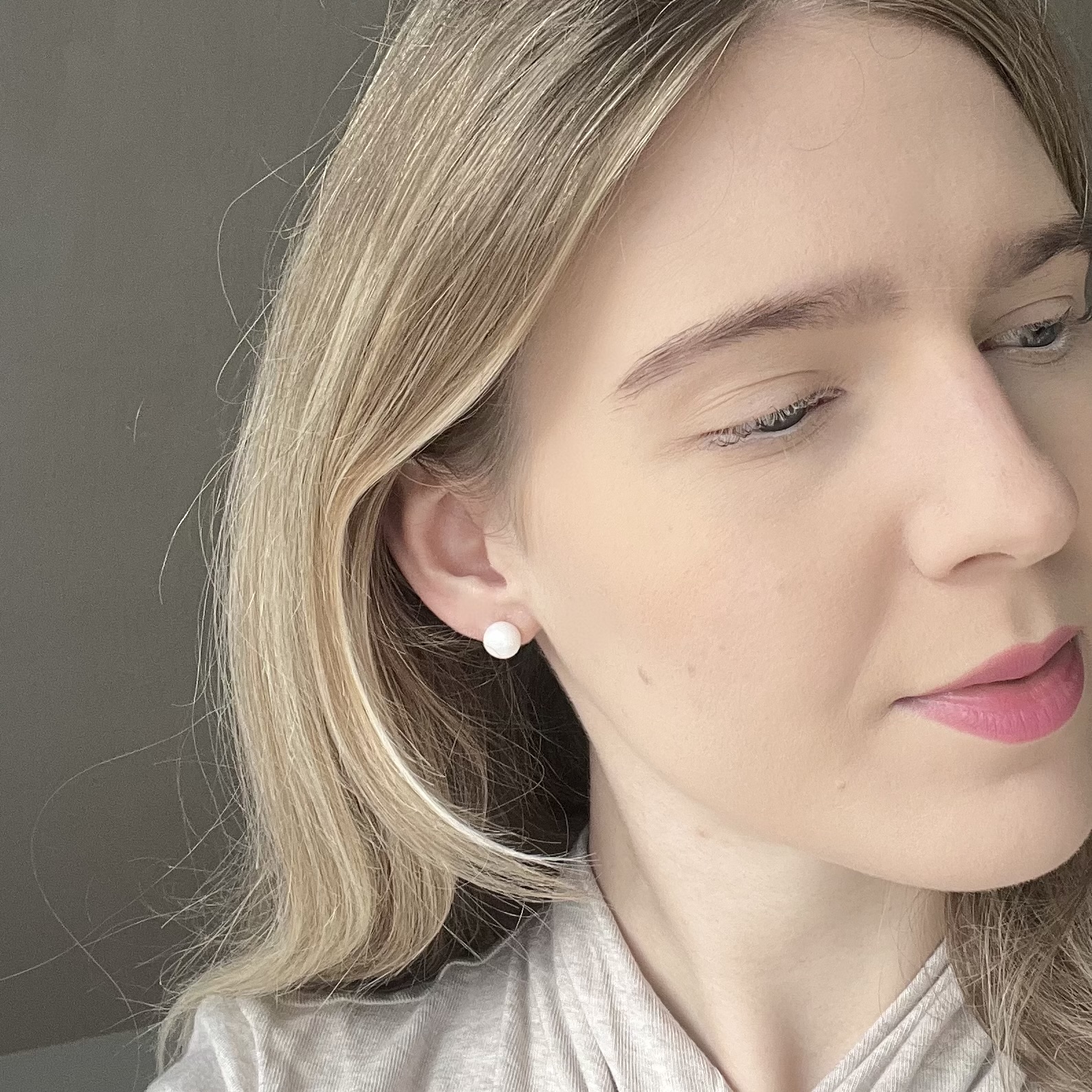 Minimalistični uhani s pravimi sladkovodnimi biseri, izdelani iz Srebra 925 oz. Sterling silver 925. Uhani so hipoalergeni, zato so primerni tudi za občutljivo kožo.